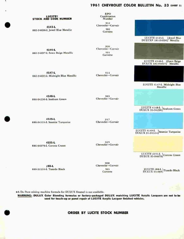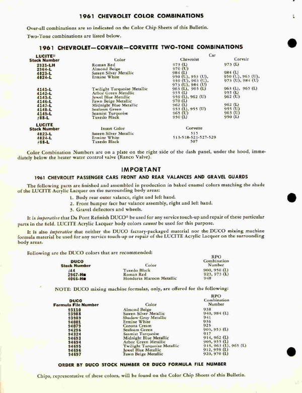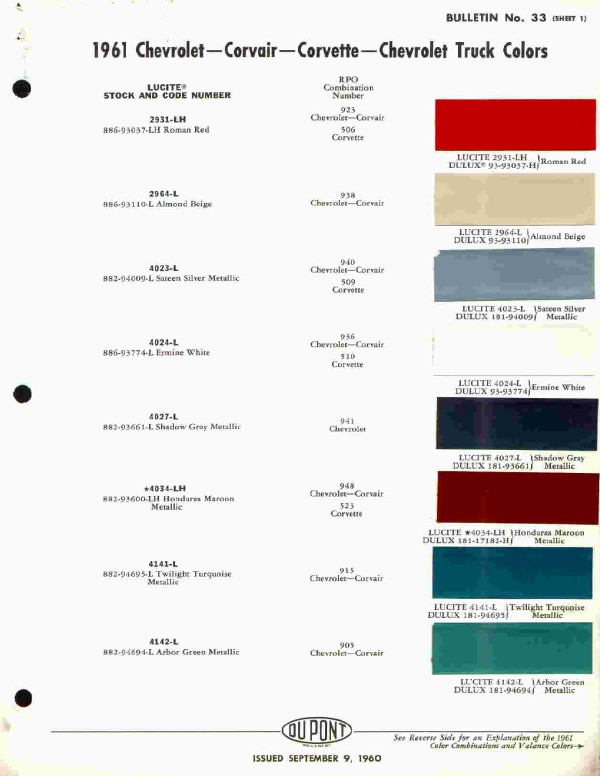 The exterior colors for the 1961/62 Chevrolets were designed to stimulate emotions in the buyers. Here are some of the combinations that were available. (Click on thumbnails to see larger images)